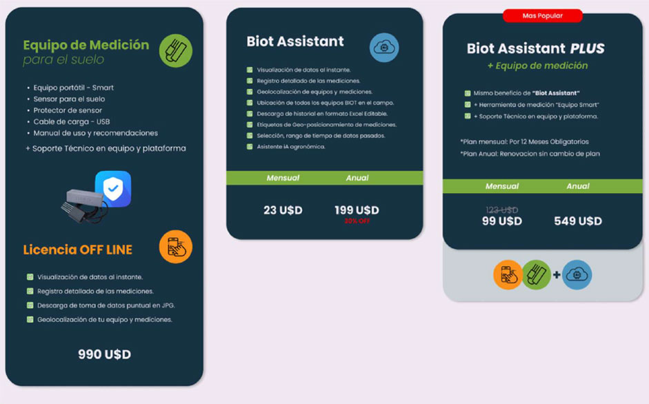 Puedes optar por adquirir solo el equipo de medición, sumar la plataforma Biot
